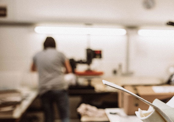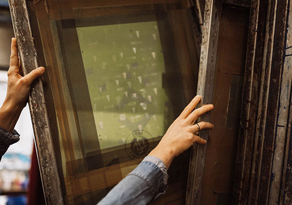 Wir nutzen traditionelle handwerkliche Drucktechniken wie Siebdruck und Flockprint, genauso wie modernen Digitaldruck.